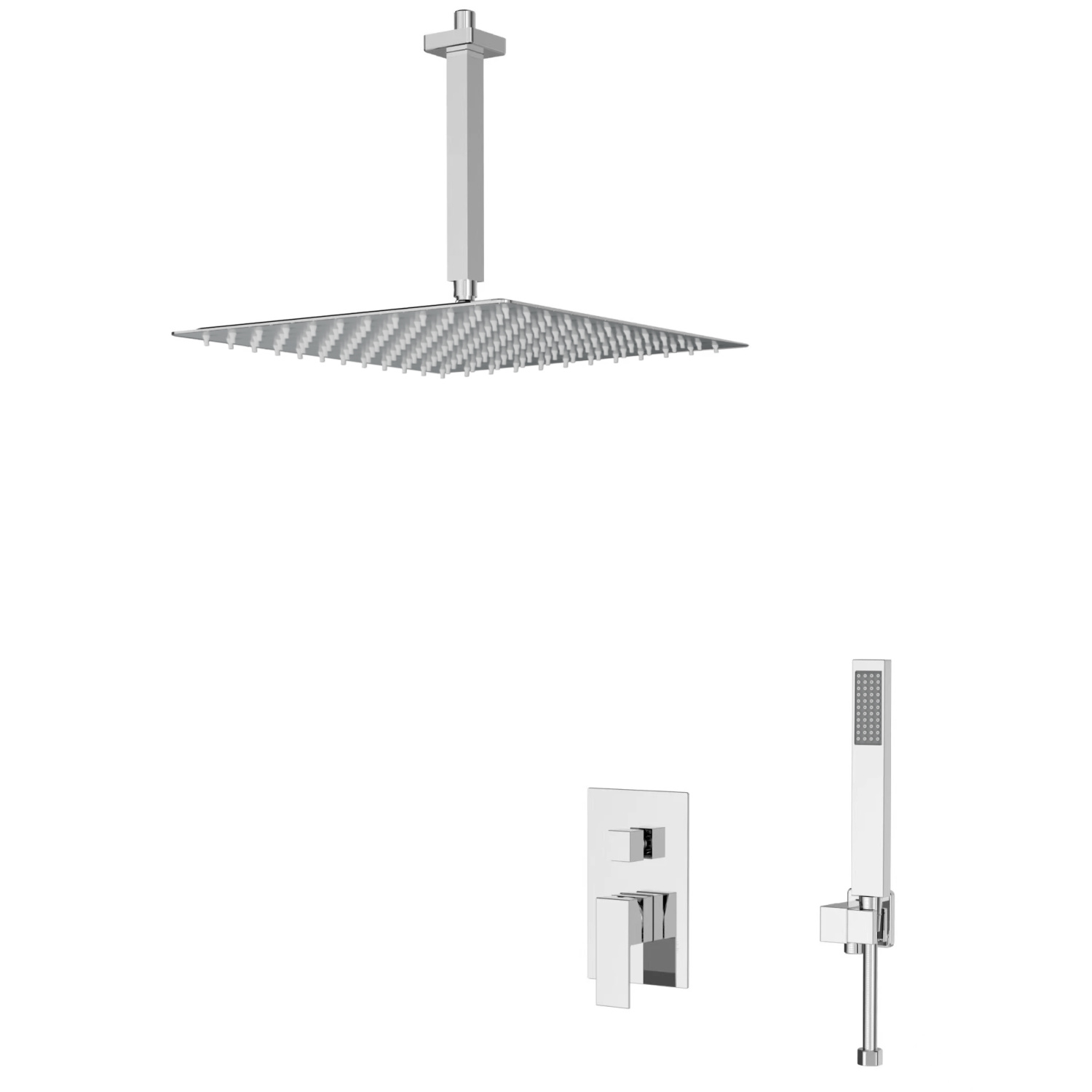 - Смеситель, встраиваемая часть: блок, держатель ручного душа, ручная лейка, держатель верхнего душа, тропический верхний душ, душевой шланг, паспорт, брендовая сумка