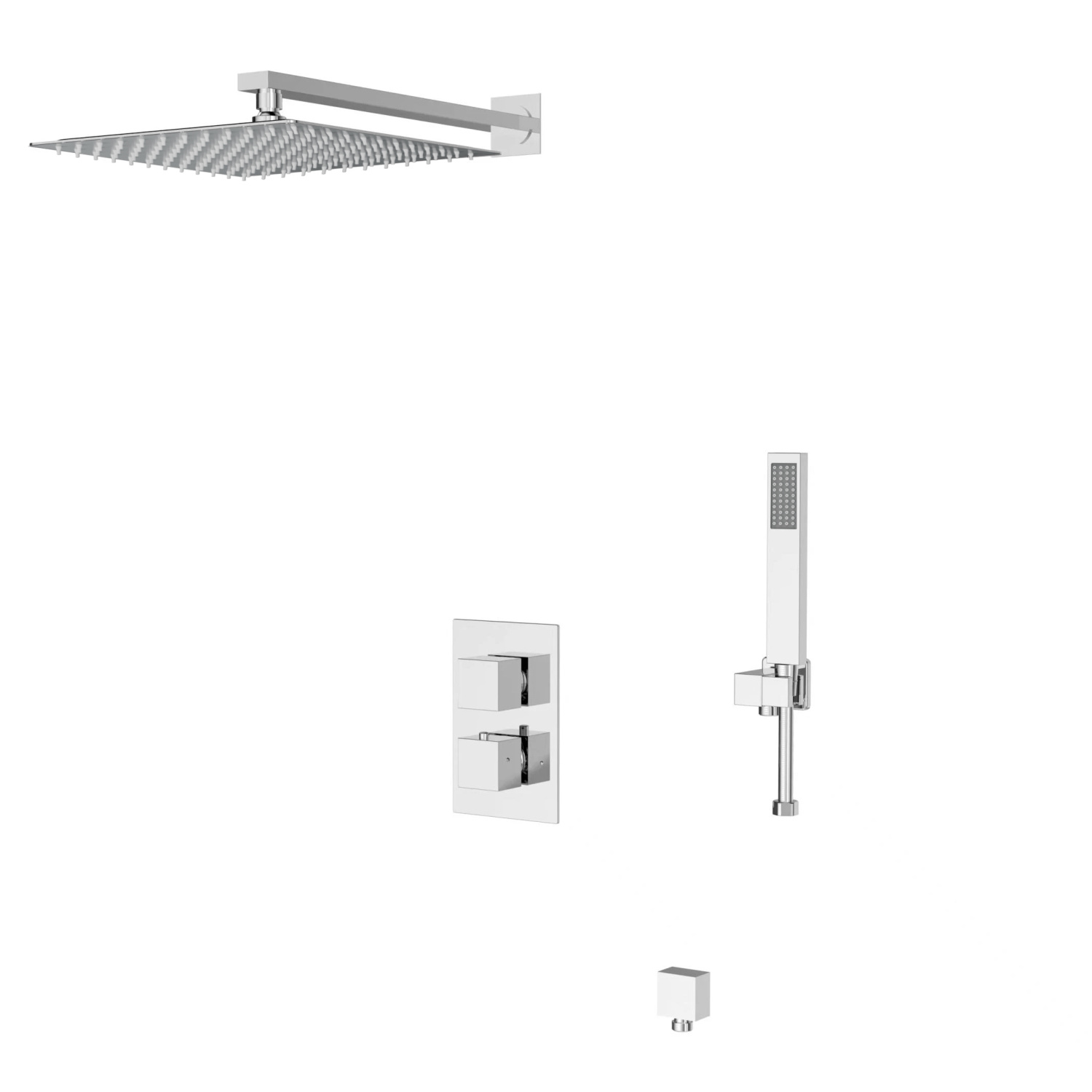 - Смеситель, встраиваемая часть: блок, держатель ручного душа, ручная лейка, держатель верхнего душа, тропический верхний душ, душевой шланг, паспорт, брендовая сумка