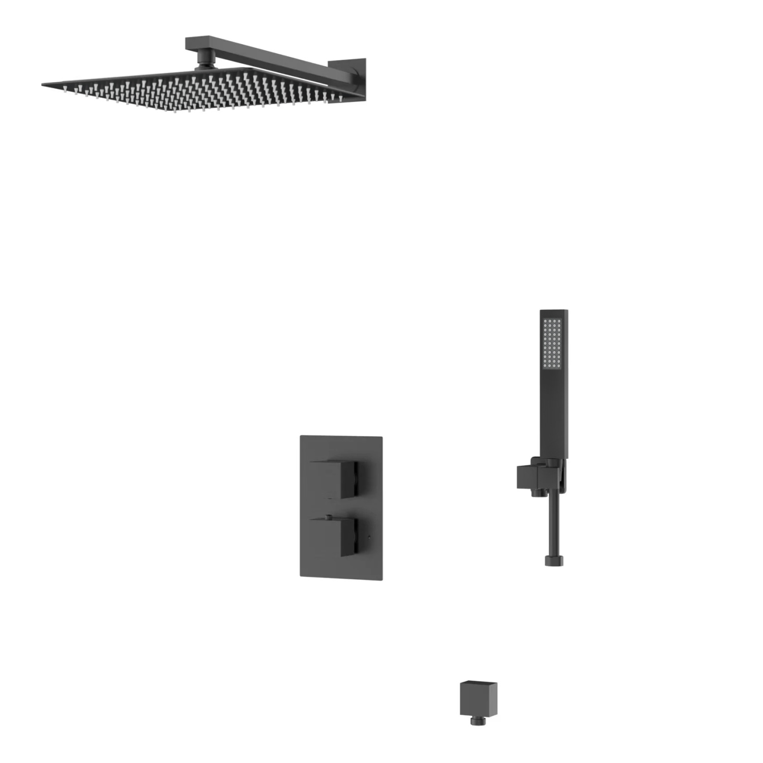 - Смеситель, встраиваемая часть: блок, держатель ручного душа, ручная лейка, держатель верхнего душа, тропический верхний душ, душевой шланг, паспорт, брендовая сумка